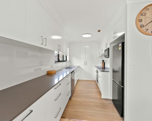 - Fully equipped kitchen with dishwasher, microwave, oven & cooktop